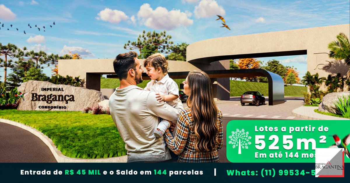 O Imperial Bragança, se trata de condomínio fechado na cidade de Bragança Paulista, constituído por 465 lotes com valores a partir de 289 mil com metragem variadas desde 525m², com opções para você escolher o que melhor combina com sua vida.