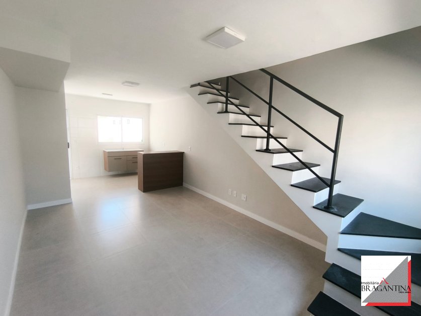 Sobrado com 2 dormitórios, sala ampla, cozinha com gabinete e bancada, quintal, área de serviço e vaga de garagem.